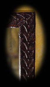 A leaf design is layered onto the frame of this mirror. See detail. Also available