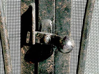 Same as Castle Three Door fireplace screen but with two doors instead of three. Note the riveted frame which is common to both Castle screens.