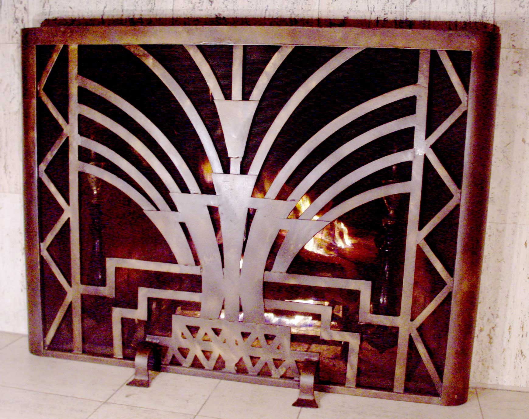 ![]() Art Deco screen This is a beautiful example of Art Deco style in a functional fireplace screen. It's sleek, streamlined form connotes elegance and sophistication. Curved sides accentuate the period look. Each screen is backed with closely woven wire mesh to help stop sparks. As seen 29"H X 36"W in a black finish Normally $1068 One available for $825! |